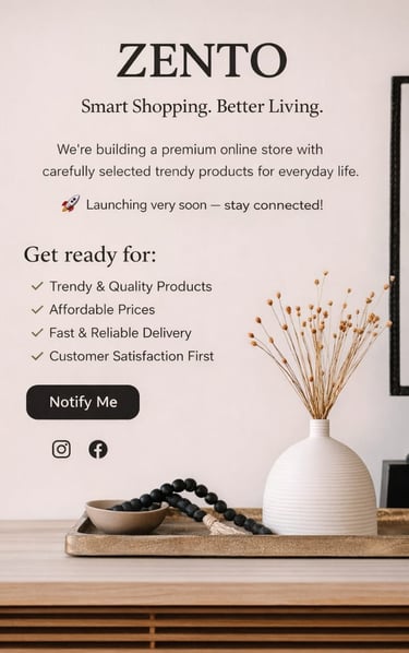 We are working on our website. Stay tuned for some exciting updates .We will see at zento store soon.....